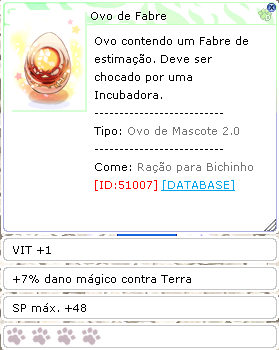 • O Ovo pode ser chocado para adquirir o mascote, ou armazenado/invocado posteriormente conforme o sistema de pets.